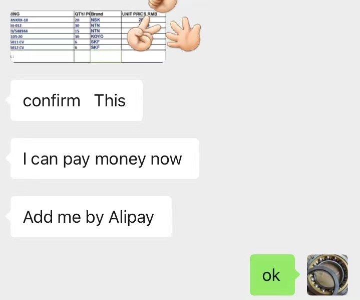 Our YX BEARINGS always offer very high advantage competitive bearings, from the quality, cost and service. See, our this new customer is very fast make the order. So you can trusthworthy of us.
